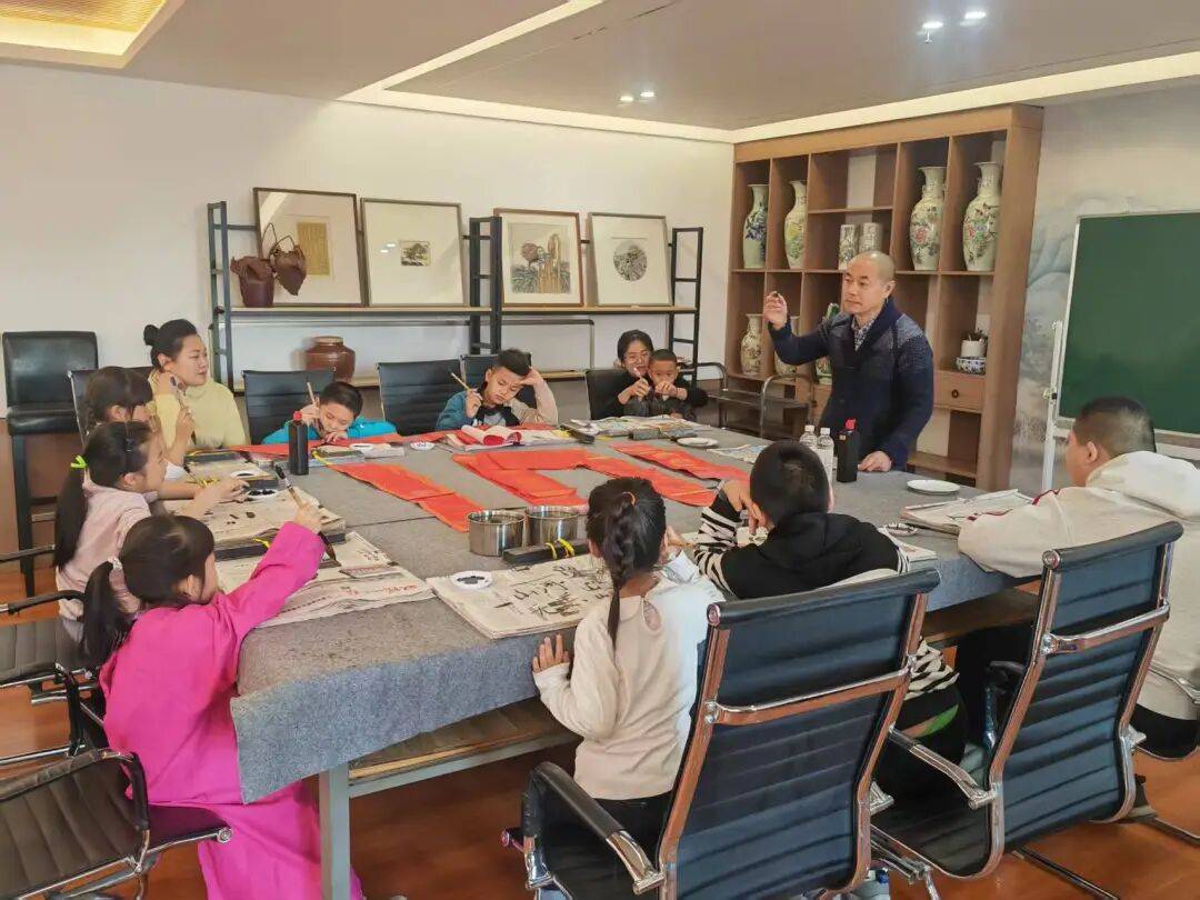 此次活动精心安排,特邀请到了两位专业书法家亲临现场进行示范教学。活动伊始,书法家系统且细致地讲解了毛笔的正确握持姿势以及基础笔画的运笔方法。为了让孩子们更好上手,活动以“福”字教学作为切入点,逐步引导孩子们完成写春联与福字的创作。