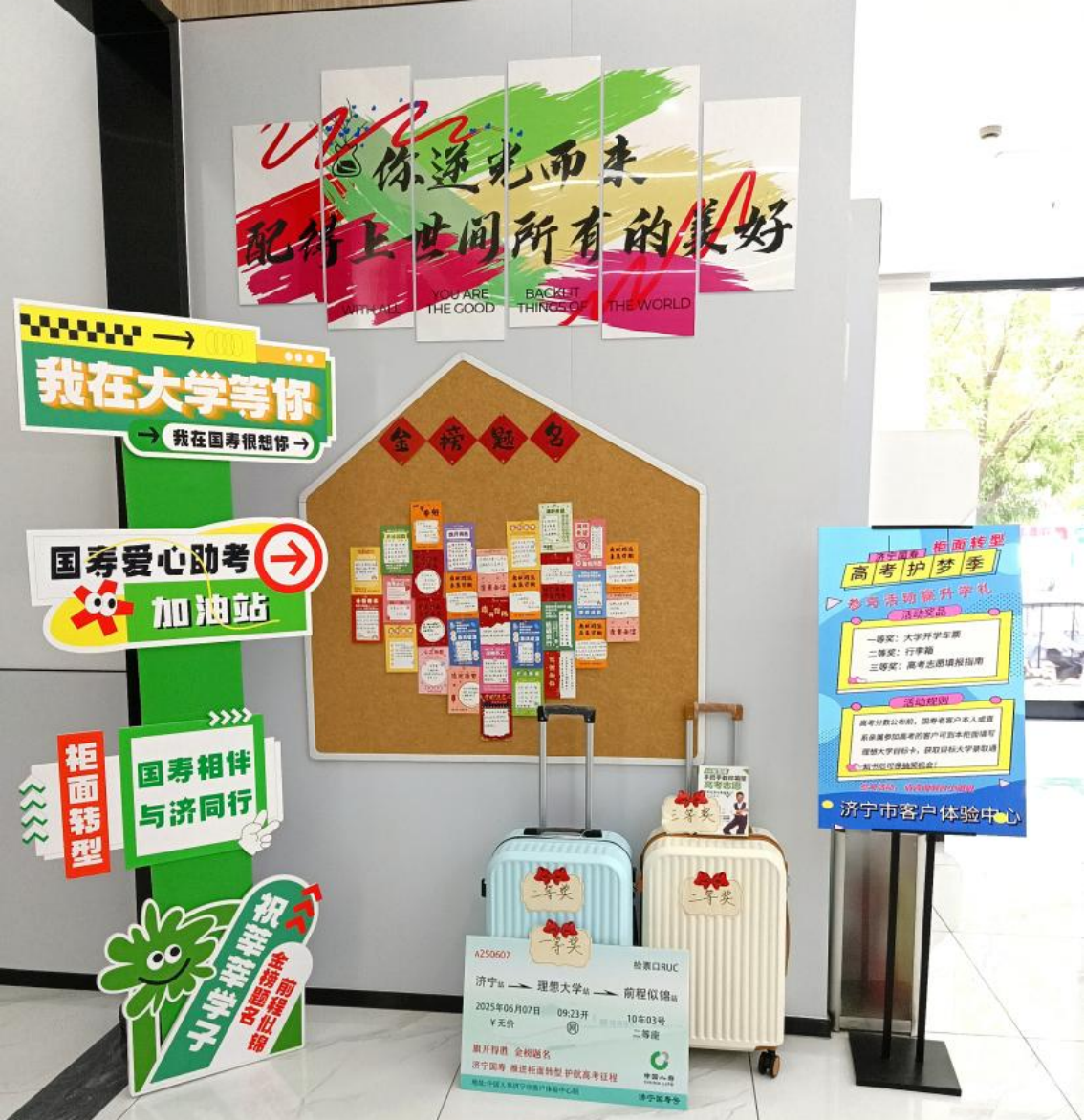 六月盛夏,一年一度高考季如约而至。为护航莘莘学子逐梦之路,传递金融央企社会责任担当,2025年高考期间,中国人寿济宁分公司客户体验中心开展“暖心守护 逐梦圆梦”爱心公益活动,通过营业厅福利激励、考点服务保障、金融知识科普等多元举措,为考生及家长打造安心应考环境。